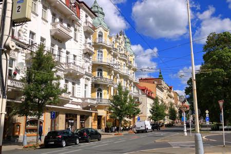 Sadova street with beautiful historical houses in Karlovy Vary, Czech republic