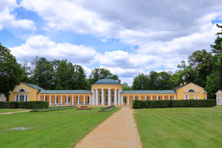 Russia May 3, 2021 Pyatigorsk, view of the Lermontov gallery in the city park Flower garden. Photo taken on a sunny day