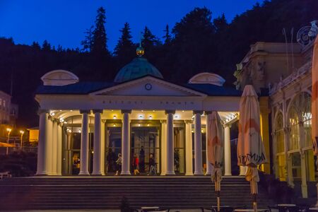 Marianske Lazne, Czech Republic - September 15, 2018: Colonade in Spa cin Europe at night time with light