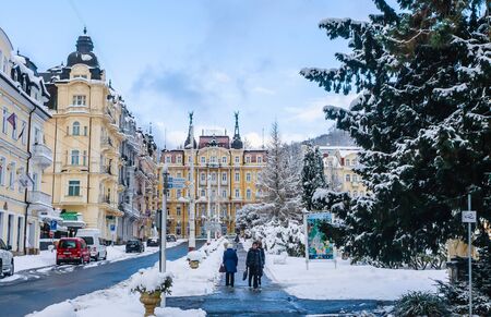 Street in spa town Marianske Lazne (Marienbad) Czech Republic.Winter time