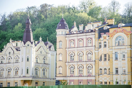 cold old city landmark destination in Lviv Ukraine park outdoor district with palace building beautiful medieval exterior and tower object