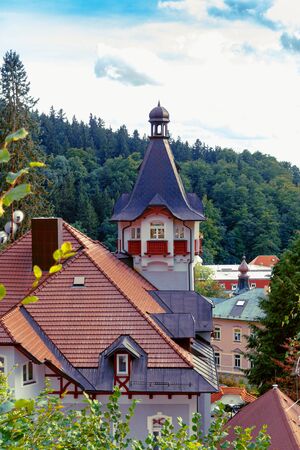 MARIANSKE LAZNE (MARIENBAD), CZECH REPUBLIC - JULY 28, 2017: Romantic architecture of Bohemia, Marianske Lazne (Marienbad), Czech Republic. the famous spa city in the Czech Republic