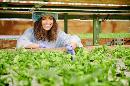 farmer cultivate healthy nutrition organic salad vegetables in hydroponic agribusiness farm.