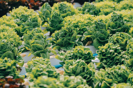 Hydroponics vegetable farm grown using organic methods. From a close-up photoshoot