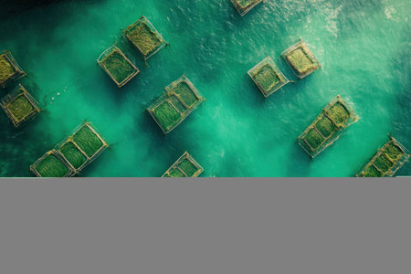 Aerial Glimpse of a Thriving Fish Farm in Tranquil Waters