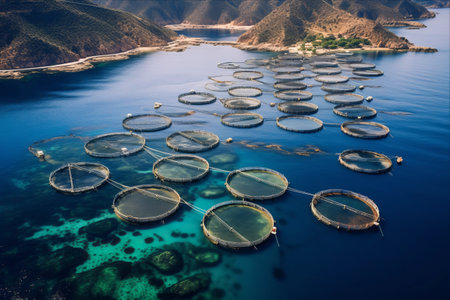 Oceanic Oasis: An Aerial Perspective of the Thriving Aquaculture Fish Farm in the Sea
