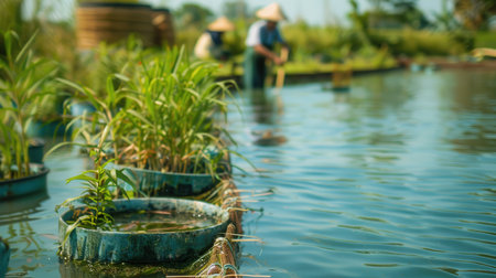 Eco-Friendly Aquaculture Practices: Farmers Adding Organic Feed to Ponds for Sustainable Fish Farming