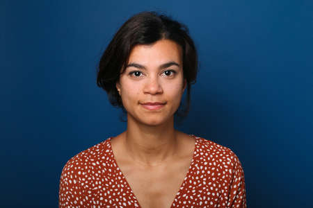 Portrait of a serious girl looking at camera. Angry people with serious gesture. Latin people.