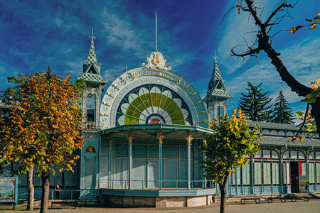 Scenic view of Lermontov Gallery, historical landmark of Pyatigorsk installed in 1901.