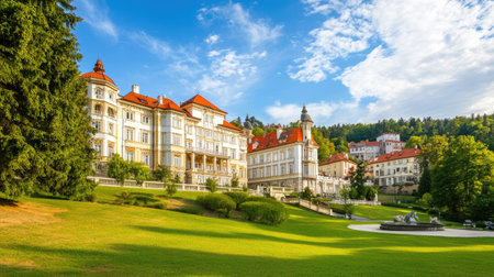 MARIANSKE LAZNE (MARIENBAD), CZECH REPUBLIC - JULY 28, 2017: Romantic architecture of Bohemia, Marianske Lazne (Marienbad), Czech Republic. the famous spa city in the Czech Republic