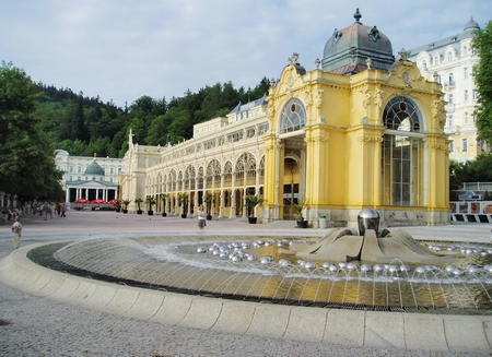 Main colonnade and Singing fountain in Marianske Lazne (Marienbad) - great famous Bohemian spa town in the west part of the Czech Republic (region Karlovy Vary)