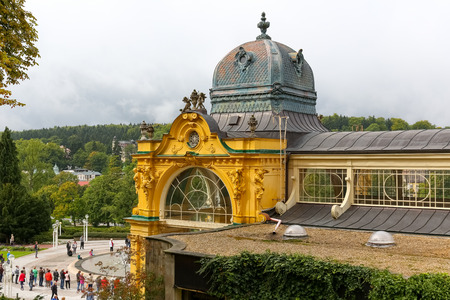 Karlovy Vary, Czech Republic- September 23, 2017: People are visiting Karlovy Vary which is the most visited spa town in Czech Republic. It is famous for its hot springs.