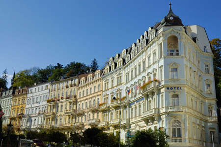KARLOVY VARY, CZECH REPUBLIC - JUNE 12, 2017: Beautiful old building in Karlovy Vary, Czech Republic. It is the most visited spa town in the Czech Republic