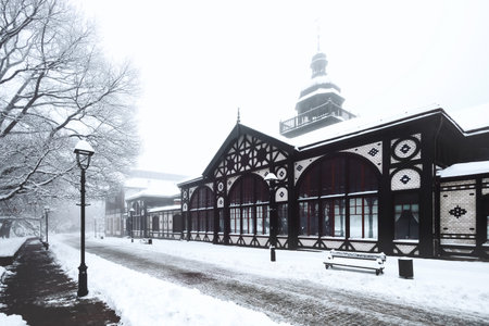 Szczawno-Zdroj, Poland - famous, historic mineral water hall in snowy winter scenery.
