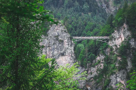 staggering view of Marienbruecke with visitors in Schwangau, Germany