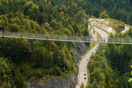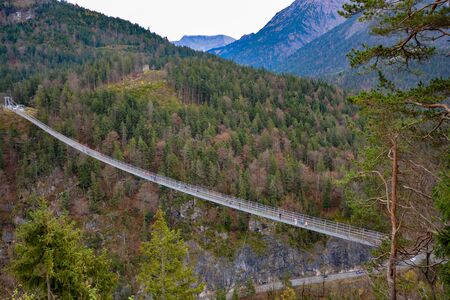 Suspension Bridge highline179 at Reutte between two hills in beautiful landscape Scenery of Alps, Tirol, Austria