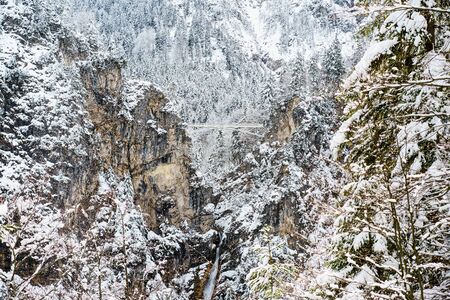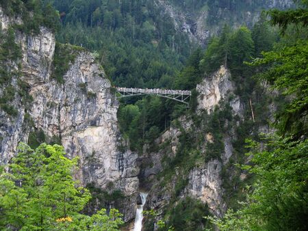 Marienbrucke Bridge and Pollat Gorge Waterfall near Fussen - Schwangau, Bavaria, Germany