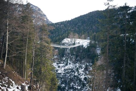 Beautiful landscape in the mountains of a suspension mountain bridge in winter in Germany