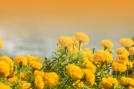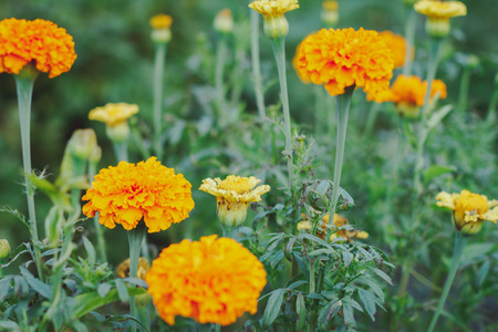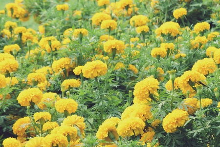 Tagetes erecta L. or Marigold in garden, Vintage filter, Soft focus