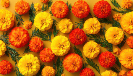 marigold flowers on orange background with copy space
