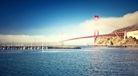 Docks with boats against a blue sky in San Francisco, CA, USA