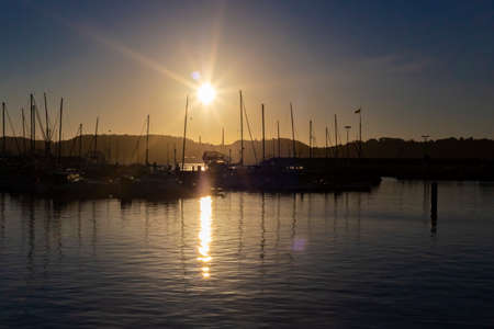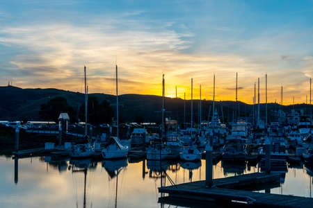 San Franciso, CA, USA-June 22, 2017: Sunset in San Francisco Bay during a sailboat race. California