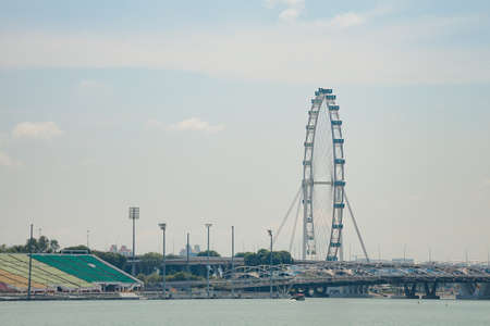SINGAPORE, SINGAPORE - FEBRUARY 26, 2020: Singapore Flyer - a giant Ferris wheel in Singapore in a sunny day