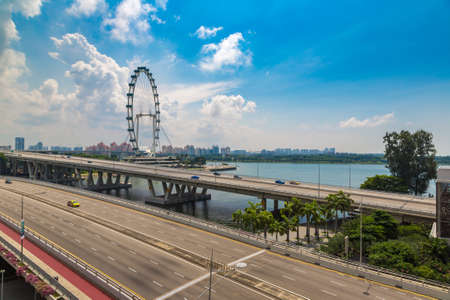 Skyline of Singapore with Flyer and modern buildings