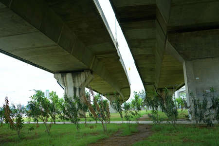 Concrete structure of BTS skytrain tracks on sky background