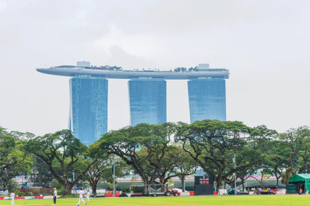 Singapore-05 MAY 2018: Football field big lawn near Singapore marina bay area
