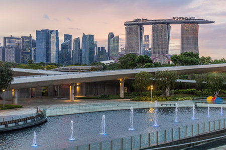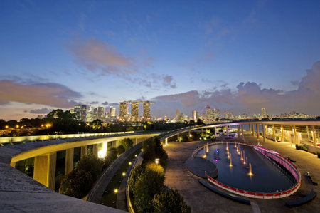 Singapore Landscape of business building around Marina bay, Singapore Skyline at night view the business bay district on Marina bay at dusk.