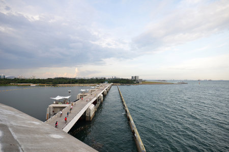 SINGAPORE - JAN 15, 2017: Peoples visit Marina Barrage, Singapore. Marina Barrage is a government-commissioned dam built across the mouth of Marina Channel