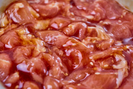 Marinated Chicken Breast with spices and rosemary.Chicken fillet in red marinade with spices.