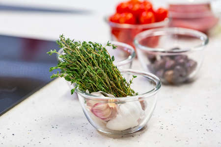 Food ingredients and kitchen utensils for cooking