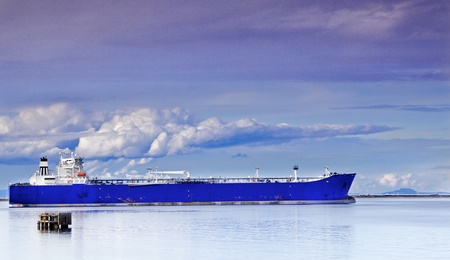 Blue Tanker or Frieghter anchored in the San Juan de Fuca Straits