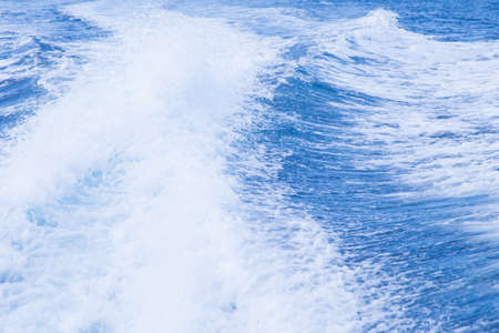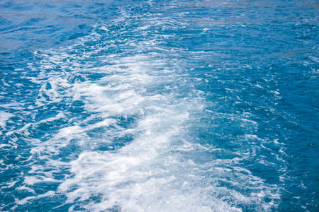 Vivid natural blue sea waves boat trail background