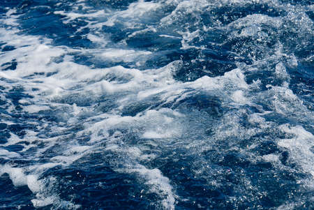 Rapid sea while sailing ship. deep turquoise and blue Mediterranean sea with texture background. Background shot of aqua sea water surface