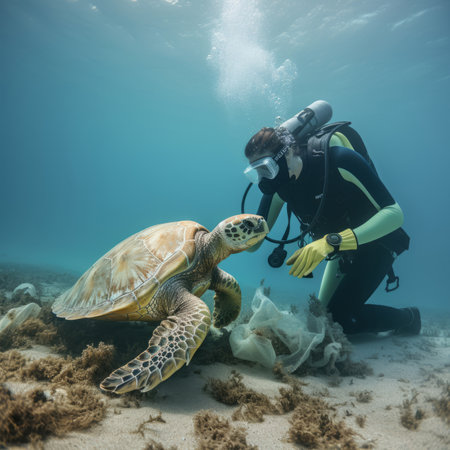 A dedicated individual retrieves debris from the ocean's depths, showcasing efforts to preserve marine life.