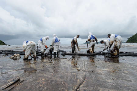 crude oil on oil spill accident on Ao Prao Beach at Samet island on July 31,2013 in Rayong,Thailand