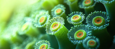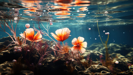 Wonderful aquatic life in ocean seabed. anemones. Coral reef design. Generative AI. Illustration for banner, poster, cover, brochure or presentation.