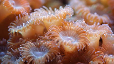 close-up of coral polyps capturing plankton in the dark, created with generative ai