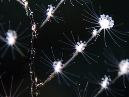 A closeup shot of a starfish under the microscope on a black background