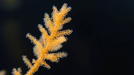 Close-up of a crystal coral on a black background. Macro