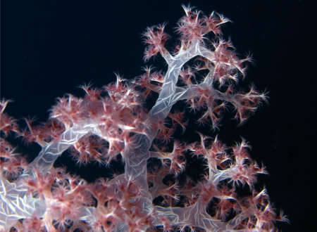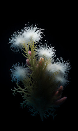 Close-up of a beautiful white coral on a black background.