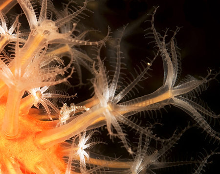 Close up of corals in a laboratory. Microscopic view.
