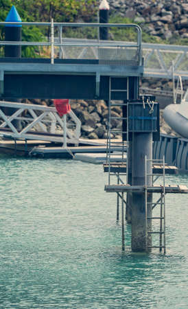Crane tools used to transport goods from ships that are on the seafront in the afternoon