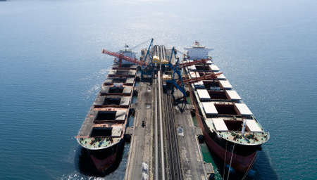 BULK CARRIERS - Merchant ships unloaded at transhipment quays in seaport