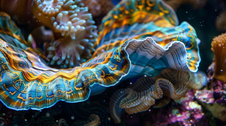 A colorful nudibranch crawling across a coral reef, showcasing the intricate patterns and vibrant hues of marine mollusks.