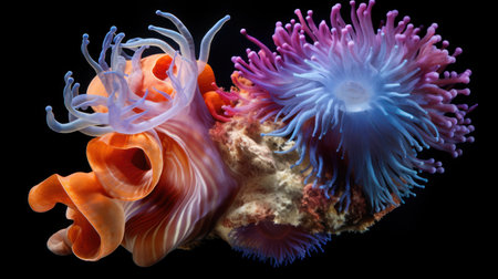 close-up of a colorful sea anemone in coral reef, created with generative ai