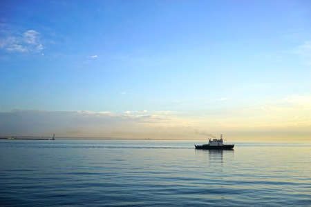 Seascape. Blue sea and sky at sunset. Natural background